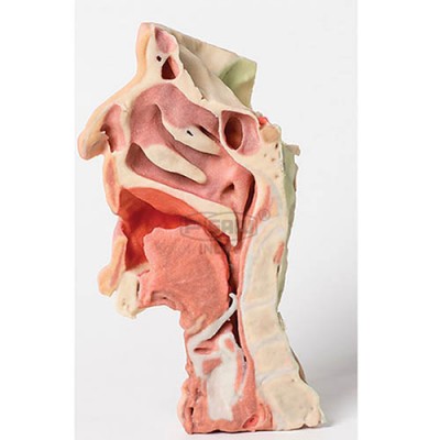 This 3-D printed model represents a midsagitally sectioned right face and neck.