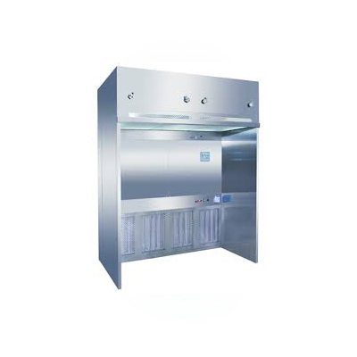Dispensing booth is a kind of laminar flow filtration cabin which is employed in dispensing sampling and weighing of powders and chemicals in pharma, biotech and chemical industries. Such units work on reverse laminar flow working principle and provide protection to operators, products/samples and surrounding environment. Dispensing booth is usually made of stainless steel and equipped with three stage filtration (10µ Pre-filter, 310µ Intermediate and 0.310 HEPA Filter) with the help of motor blower assembly, in order to measure the pressure of HEPA filter, magnehelic gauges are fitted. Pre-filters are washable.