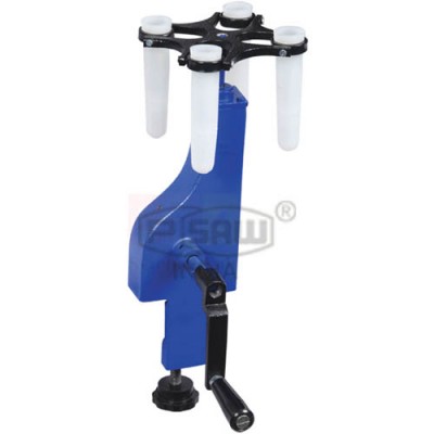 Cast metal body, removable crank handle and head, for bench mounting, supplied complete with aluminium buckets for 15 ml glass tubes.