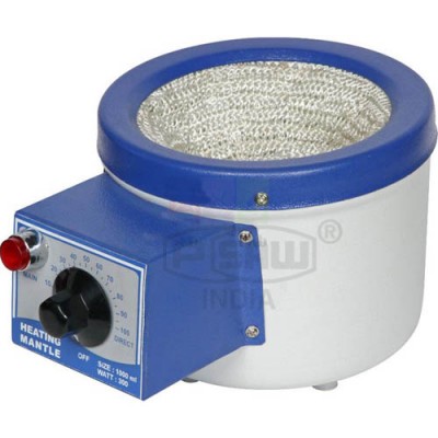 Heating Mantle 1000ML in 220 Volt Suitable for laboratories, chemicals, pharmaceuticals, Dyes, Glass plants etc. Particularly useful for Heating inflammable liquids. Electric heating net is hand knitted from glass Yarn and there is no joint to maintain the strength of the yarn and stands high temperature up to 350 degree c. the body of the mantle is spun one piece from non-rusting Aluminum (up to 1000 ML Capacity) duly stoving painted. All heating mantles are lagged with special grade mineral wool. Heating Mantle with Energy Regulator Use Original mantle wire Indicator Light Inbuilt Easy to replace Mantle.