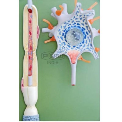 Schematic representation of the nerve cells and axon withmedullary sheath and Schwanns sheath, Lying on a base.