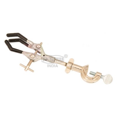 Three Prong, dual adjustment clamp holds circular and irregular shaped objects. Maximum jaw opening size - 64.8 mm (29/16”). To position your work effectively, shaft wing nut allows clamp to rotate 360°. PVC covered fingers. Clamp post holders grip rods up to 19 mm (3/4”).